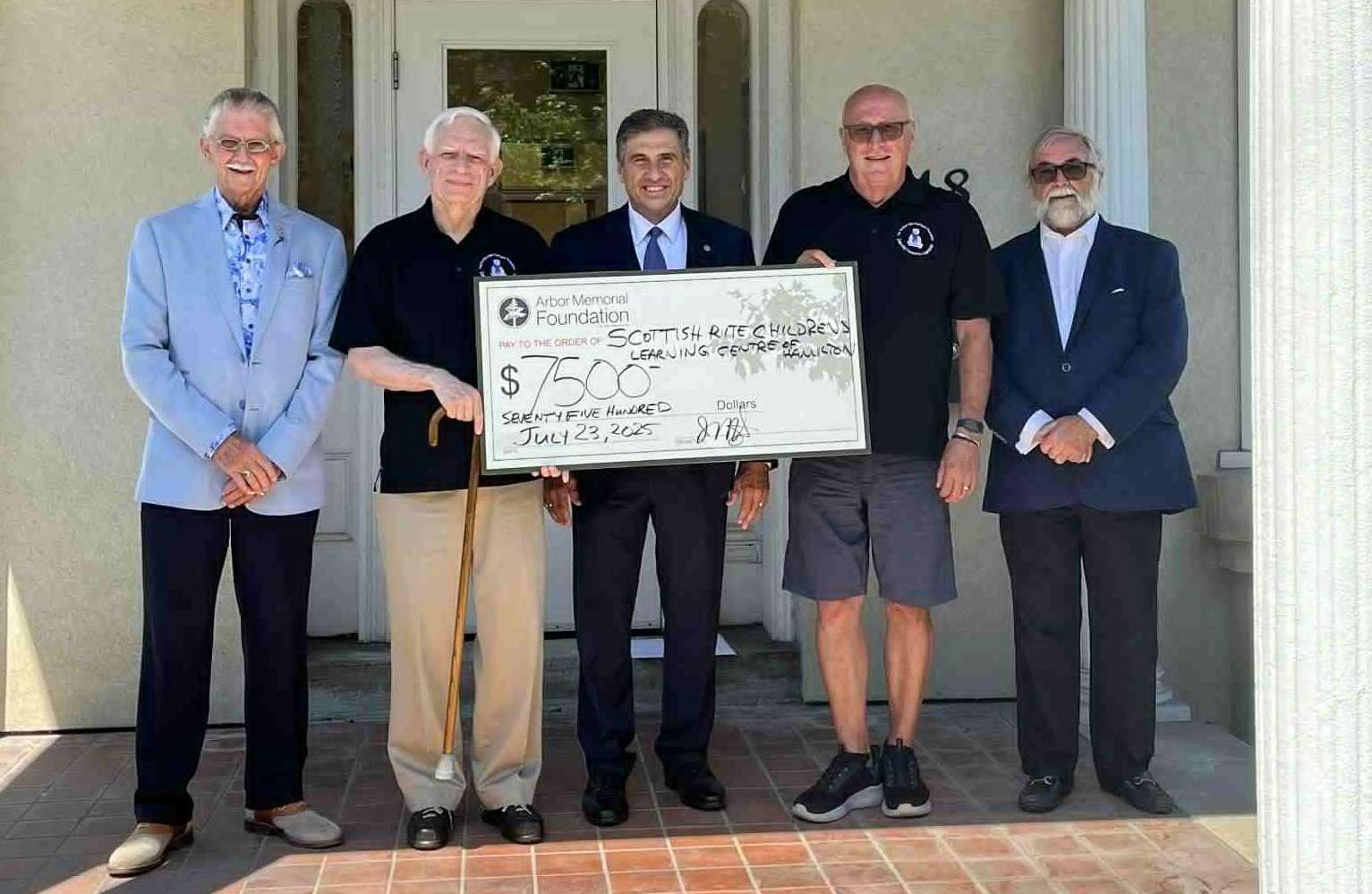 On July 23rd 2025 Jim Panoff, a Scottish Rite Mason in the Valley of Hamilton, presented a donation of $7,500.00 to the Hamilton Learning Centre on behalf of the Arbor Memorial Foundation. Our sincere thanks to Jim and the Arbor Memorial Foundation for their generosity and support.